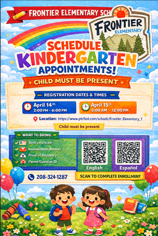 SIGN UP TO SCHEDULE AN APPOINTMENT TO REGISTER AT: www.ptfast.com/schools/frontier_elementary_1